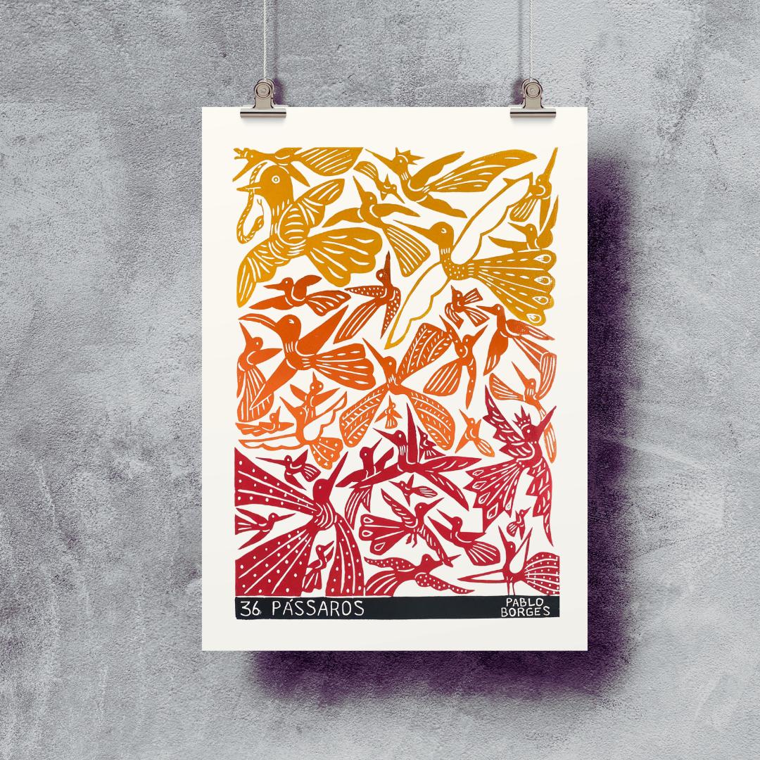 36 PÁSSAROS DEGRADÊ AMARELO, PABLO BORGES 66X48