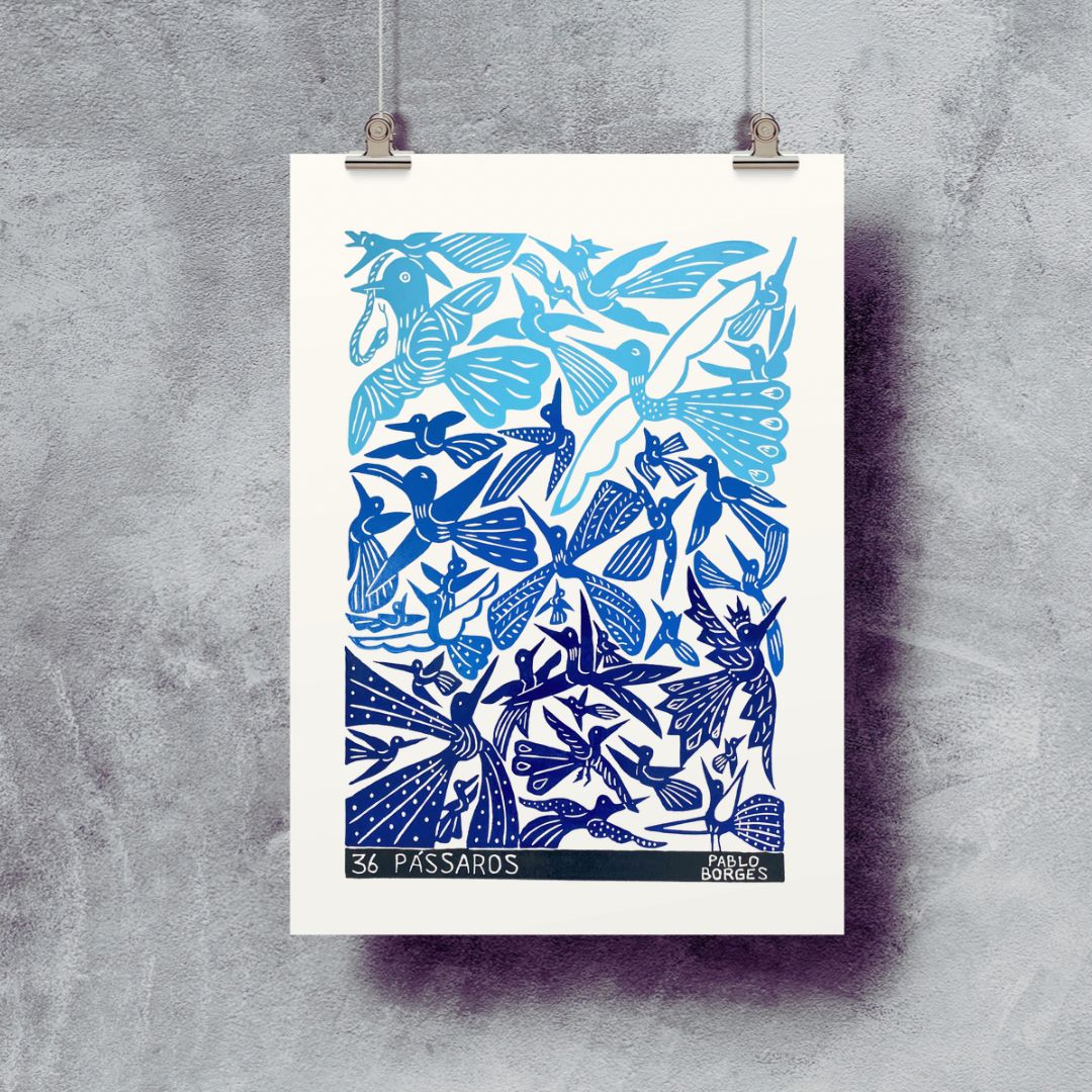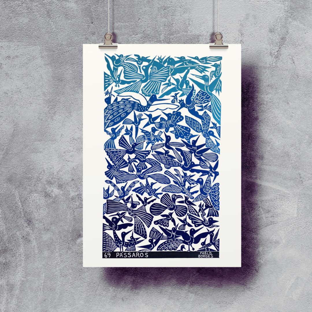 36 PÁSSAROS DEGRADÊ (AZUL) PABLO BORGES 66X48